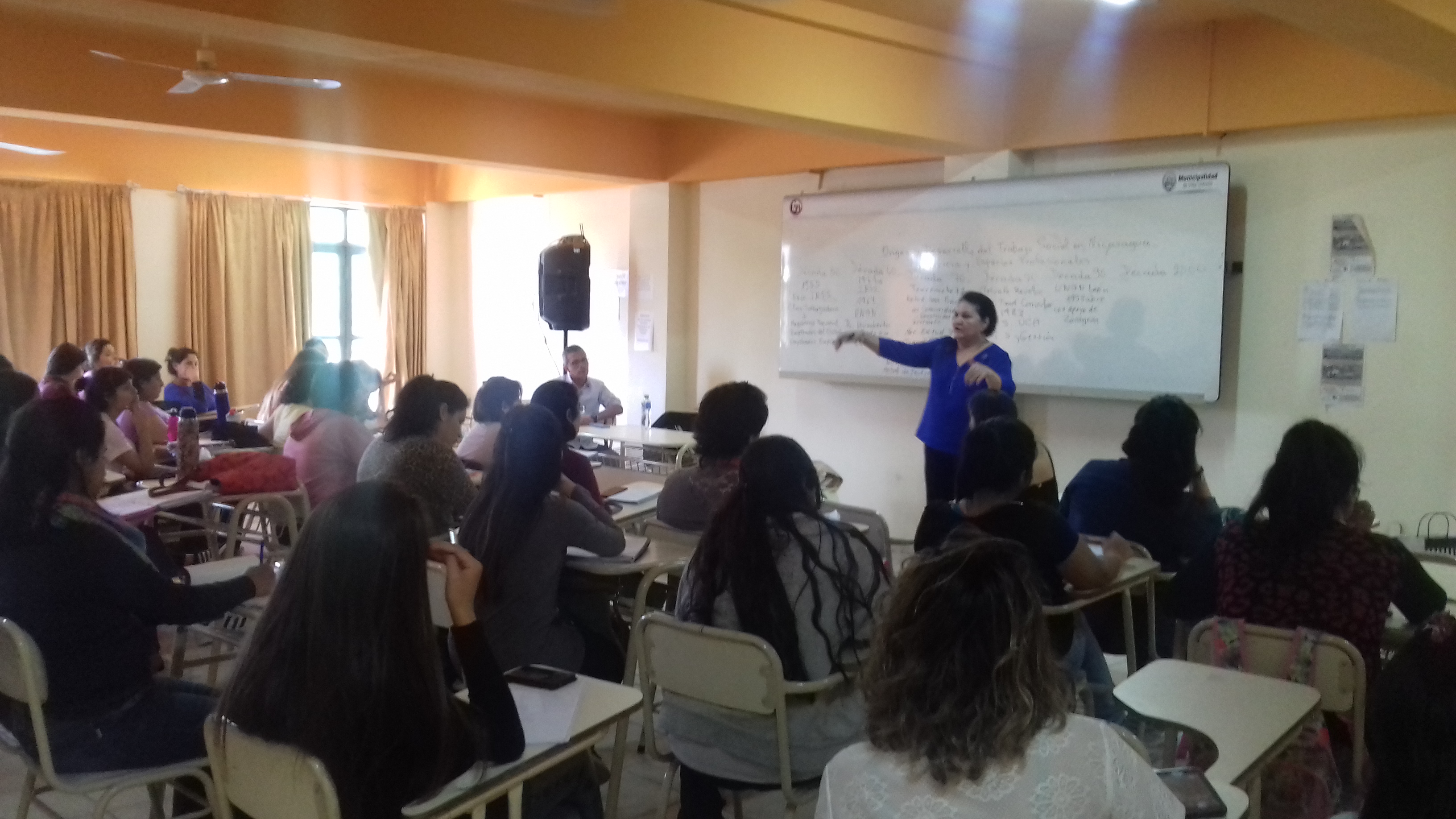 La Profesora Sánchez Barquero -quien elaboró la propuesta de reapertura de la carrera en la Universidad Pública luego de la Revolución Sandinista- desarrolló la clase “Origen y desarrollo del Trabajo Social en Nicaragua”, con el aporte de la Decana, que ofreció datos históricos de relevancia, y del coordinador, que amplió detalles relativos a la carrera. En la exposición e intercambio con estudiantes, se puso de relieve el modo en que los procesos sociales y políticos de nuestra América Latina han dejado huellas en la configuración tanto de la formación como del ejercicio del Trabajo Social.